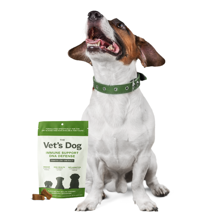 A strong immune system, antioxidants, and a well-regulated inflammatory response are essential for DNA maintenance. The Vet's Dog Immune Support DNA Defense Chews are formulated with a proprietary blend of organic botanicals that help protect DNA, promote cellular repair, and support long-term vitality.